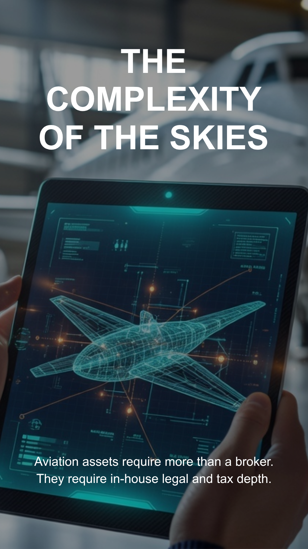 ↳ Most brokers locate an aircraft and hand you off to a lawyer they’ve never met. We have tax and legal depth on our team, which means we understand the deal at a level the other guys can’t touch. That depth is how we vet every outside partner we bring to the table. You get a tighter structure, a smarter deal, and a team that actually knows what they’re looking at.